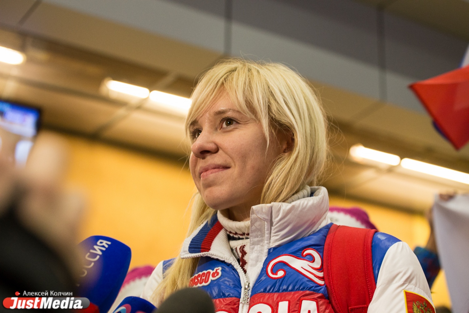 «Золотого» биатлониста и «бронзовую» конькобежку встречали родные, поклонники, чиновники и фото и видеокамеры.
