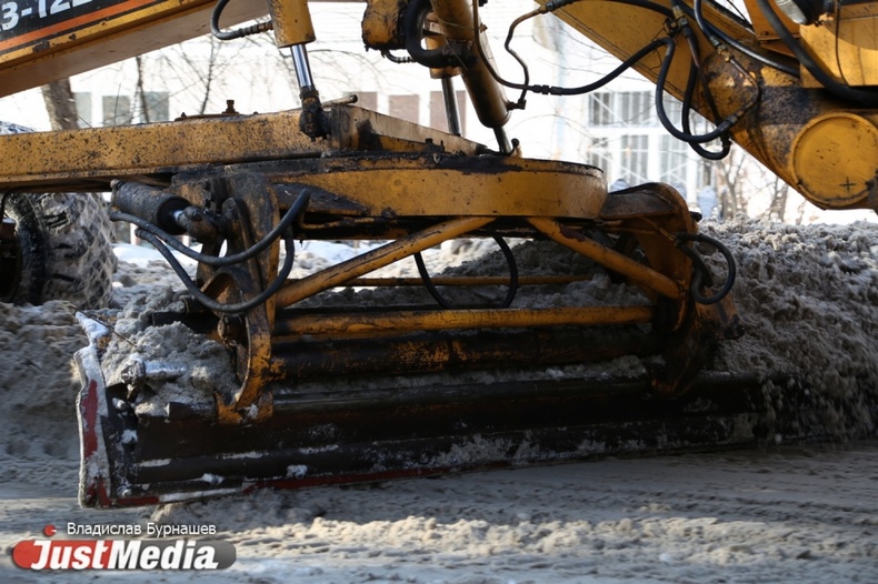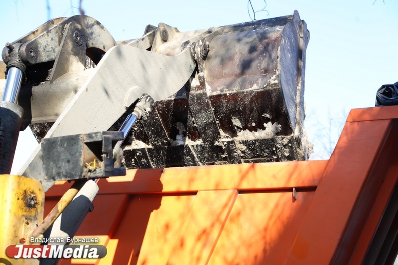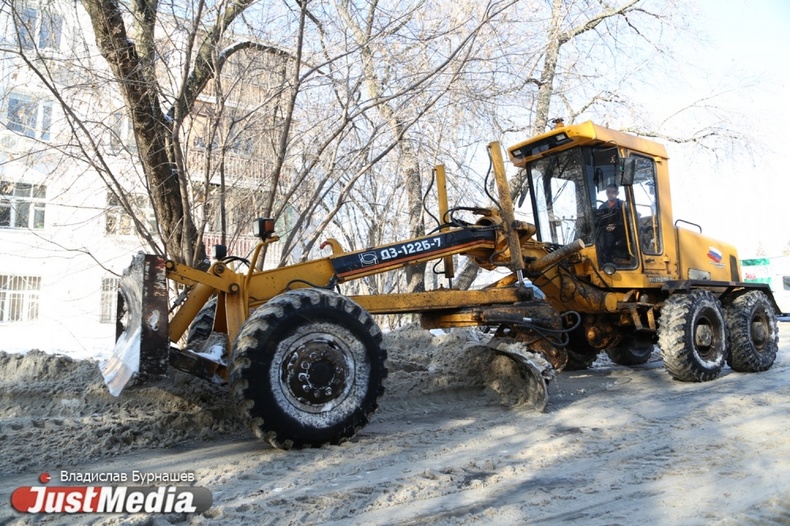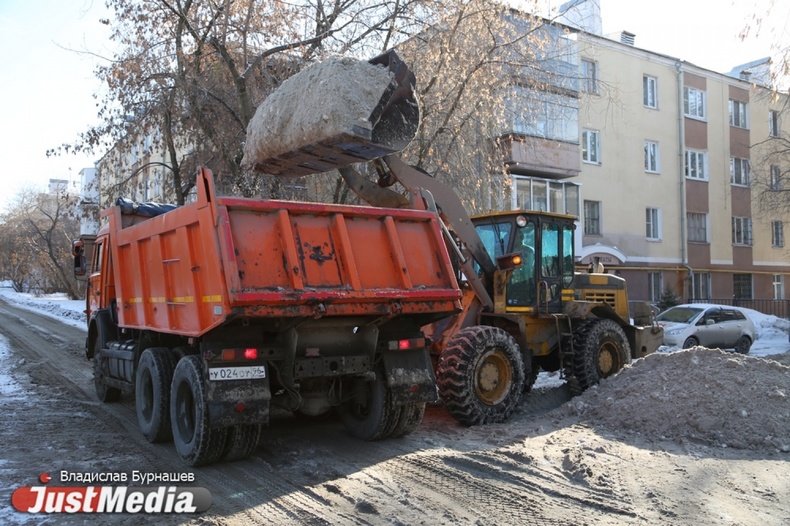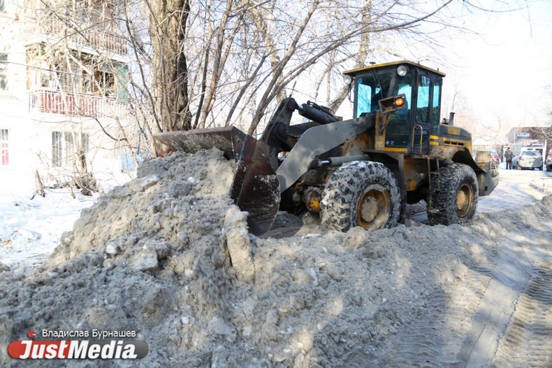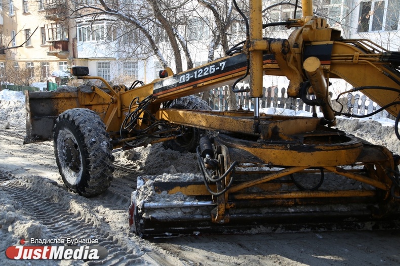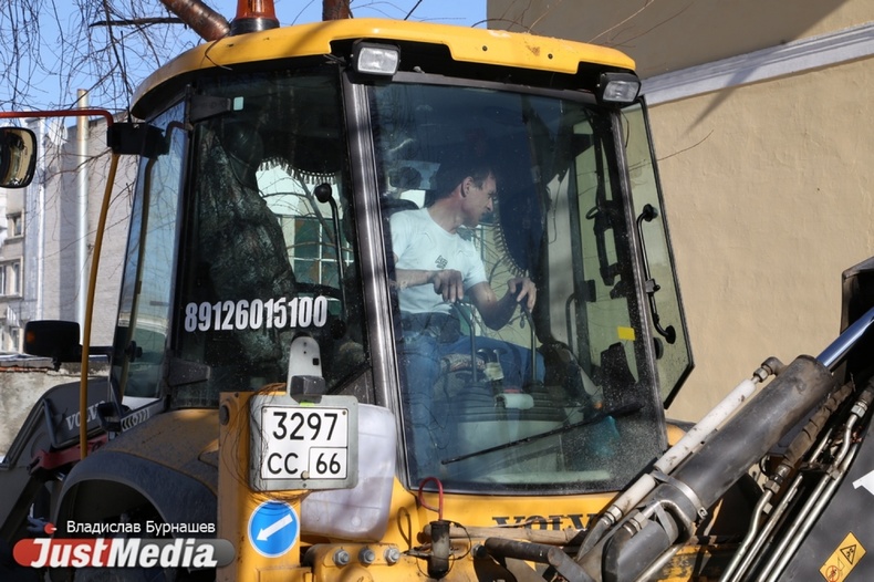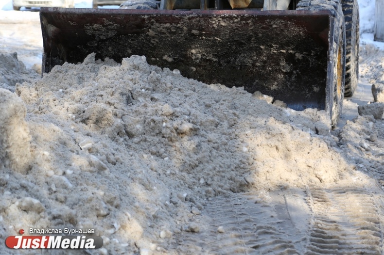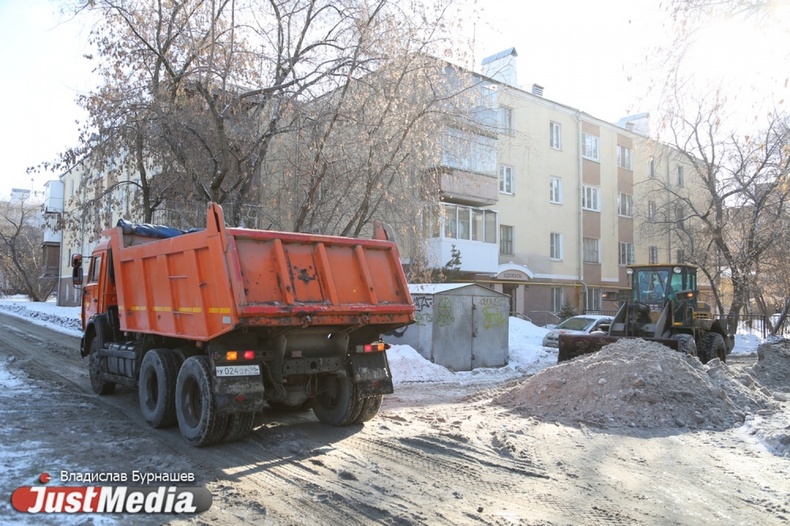 Уборка снега во дворах Екатеринбурга в первый день весны