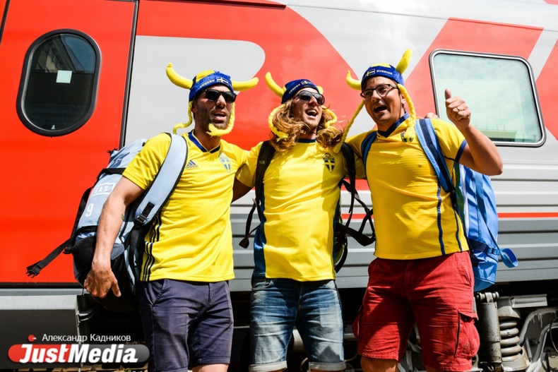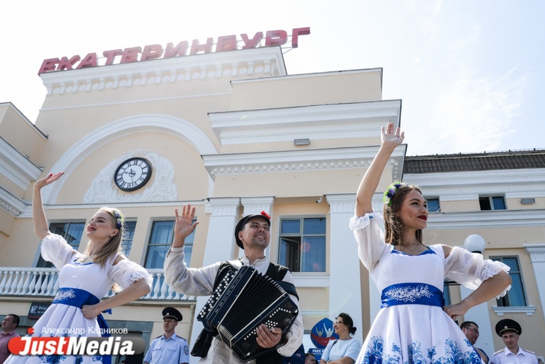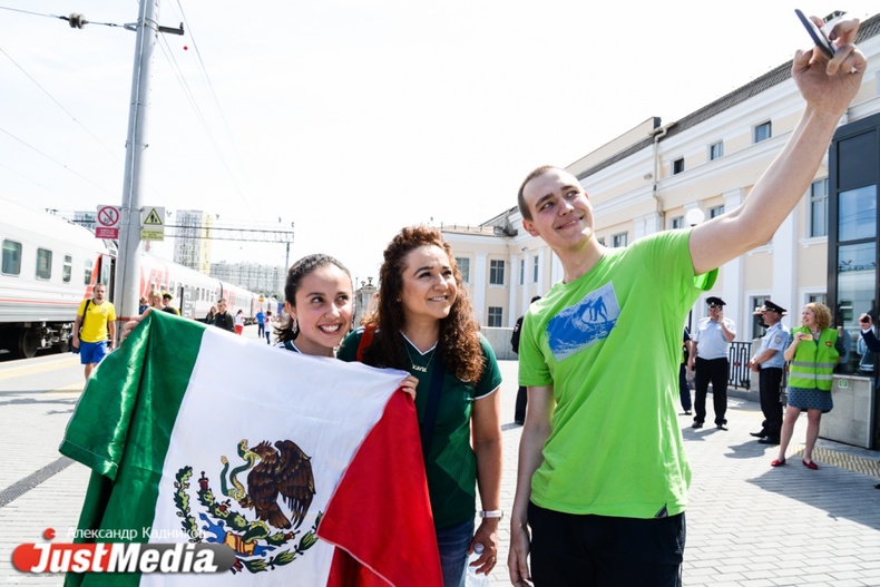 Прибытие поезда с болельщиками в Екатеринбург