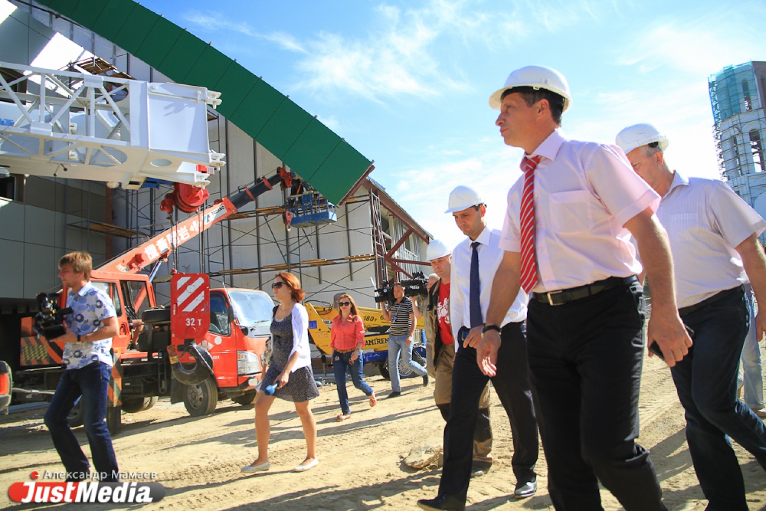Рабочий визит Дениса Паслера и Леонида Рапопорта на стройку первого крытого футбольного манежа "Урал"