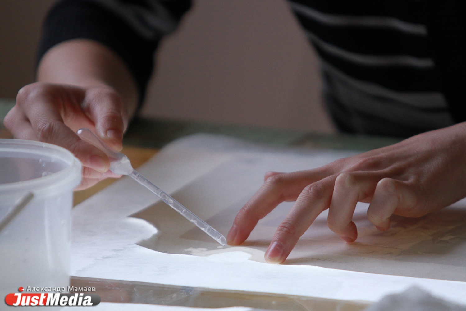 Проводила мастер-класс Дарья Смирнова, специалист Лаборатории научной реставрации графики Государственного Эрмитажа