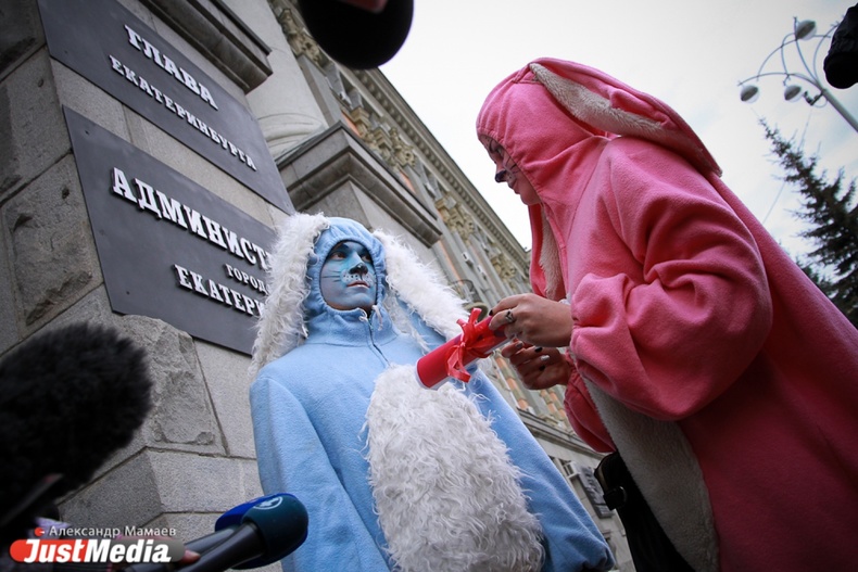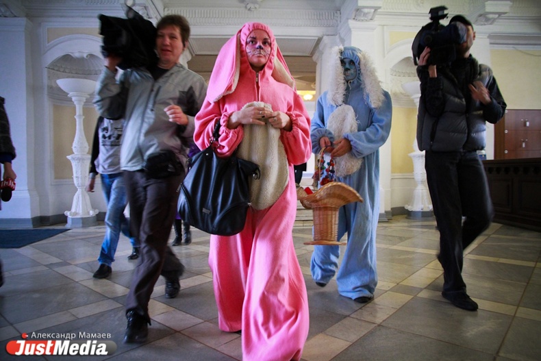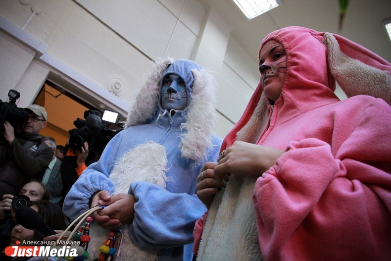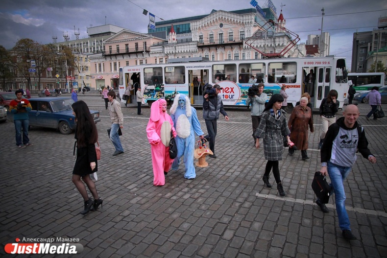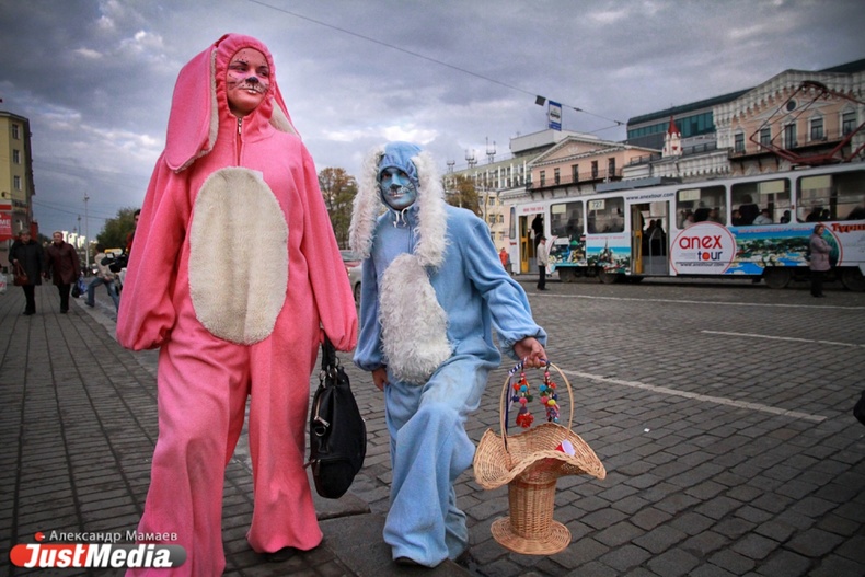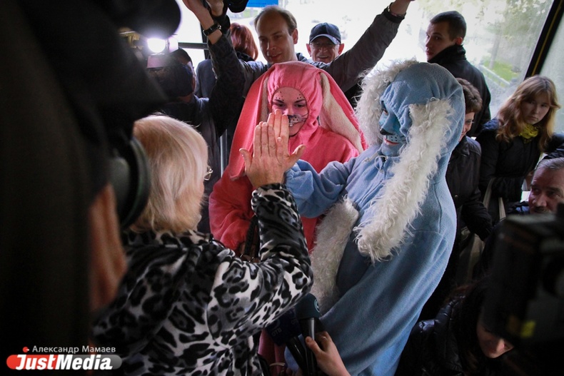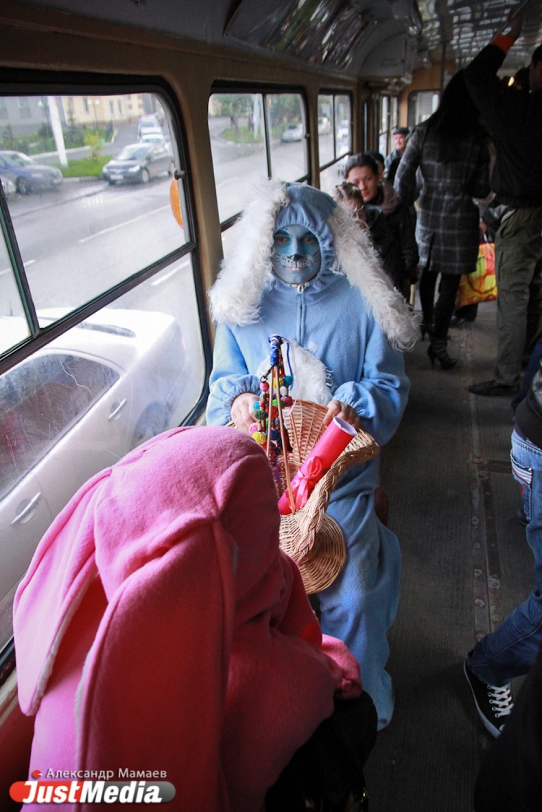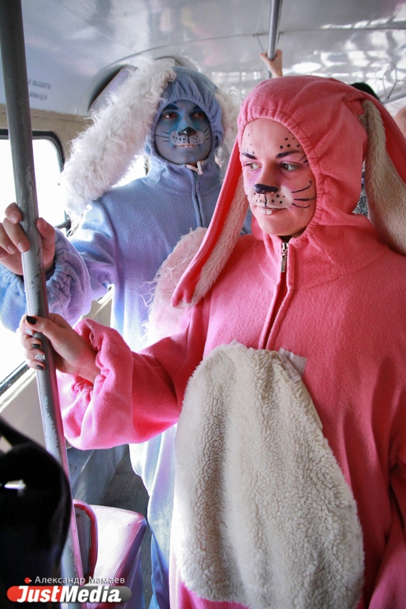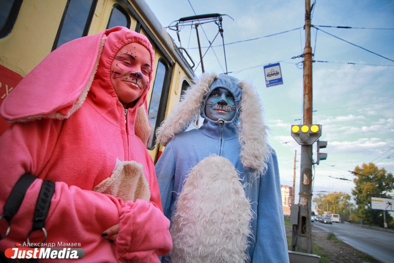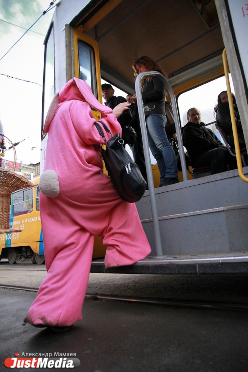 Акция «Зайчики в трамвайчике» против повышения цен на проезд