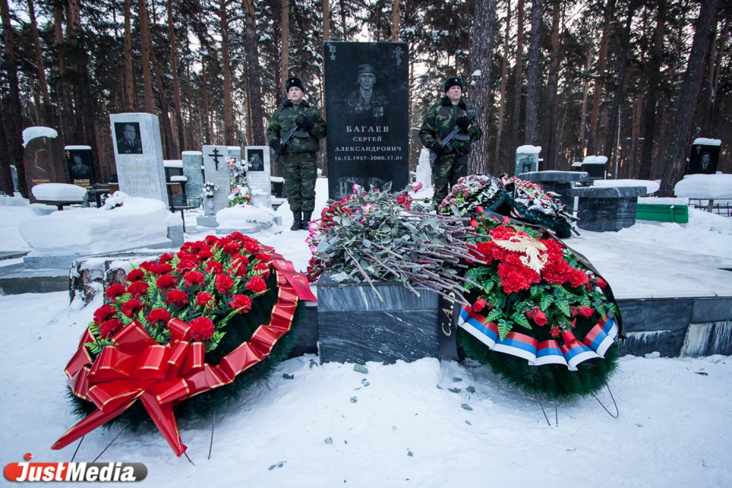 На Широкореченском кладбище прошел день памяти Героя России, сотрудники спецназа ГУФСИН «Россы» старшего лейтенанта внутренней службы Сергея Багаева, который погиб в бою с боевиками в январе 2000 года в г. Грозный и был награжден Звездой Героя посмертно.