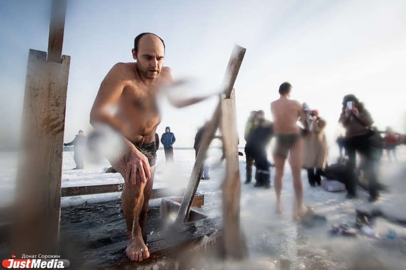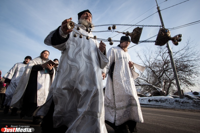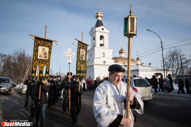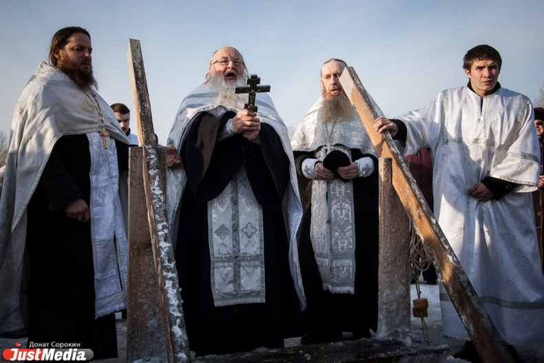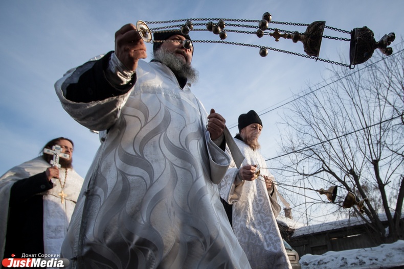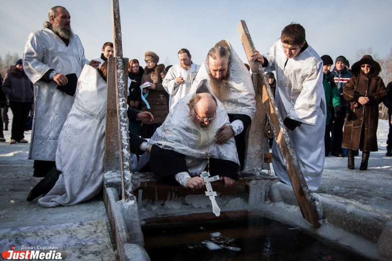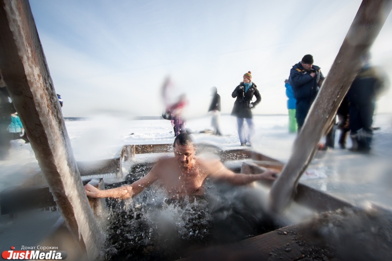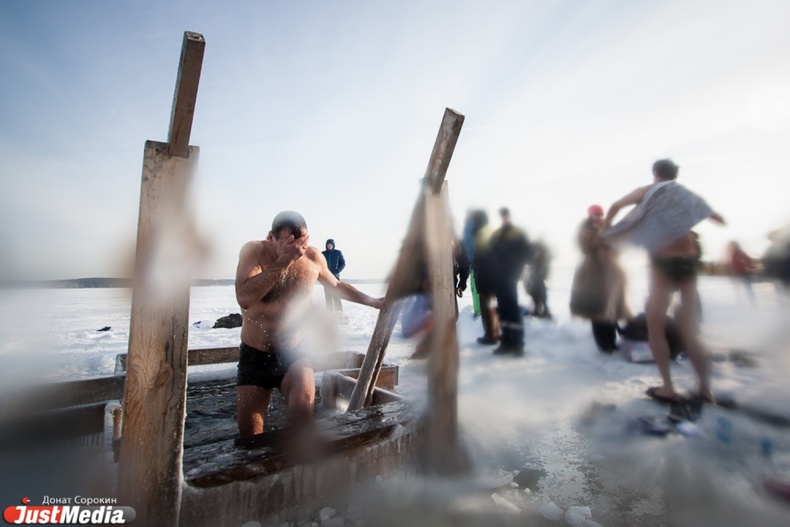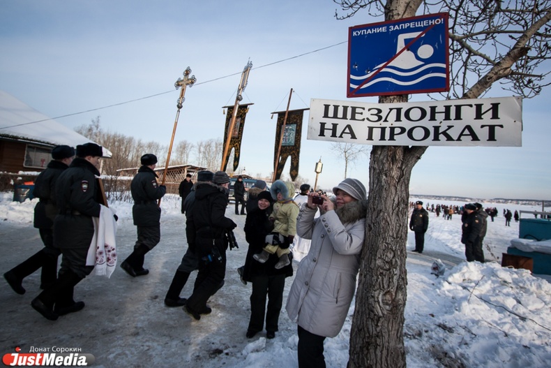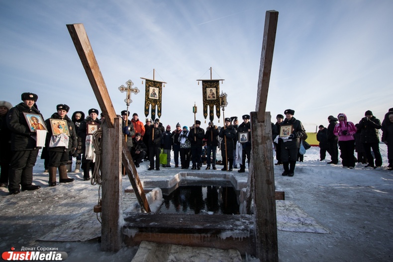Крестный ход вышел из Свято-Троицкого храма к озеру Шарташ. После освящения купелей все желающие смогли искупаться в прорубях.