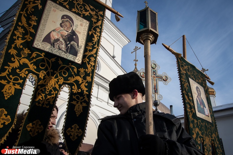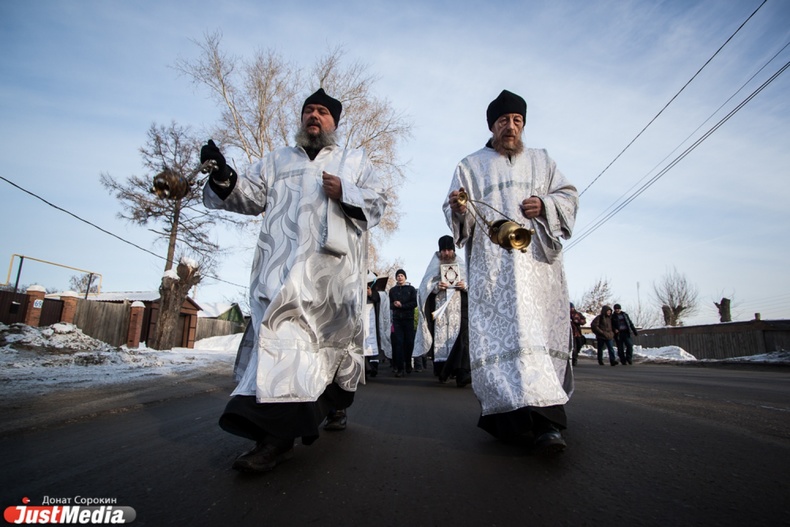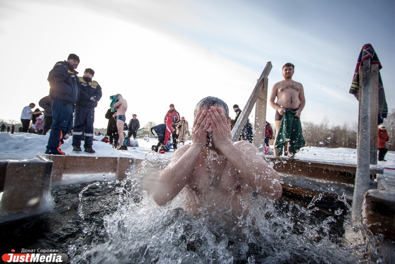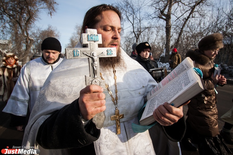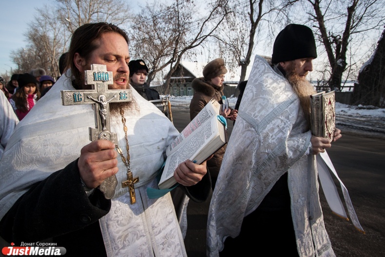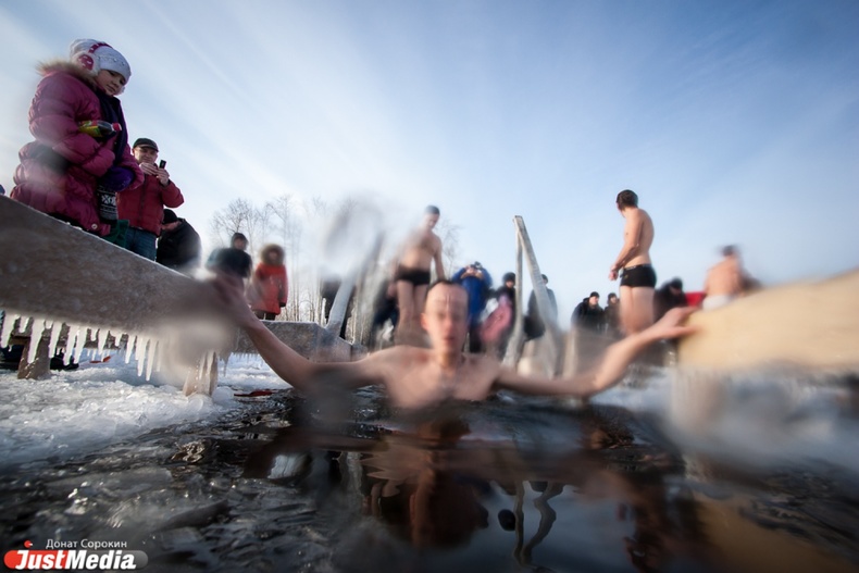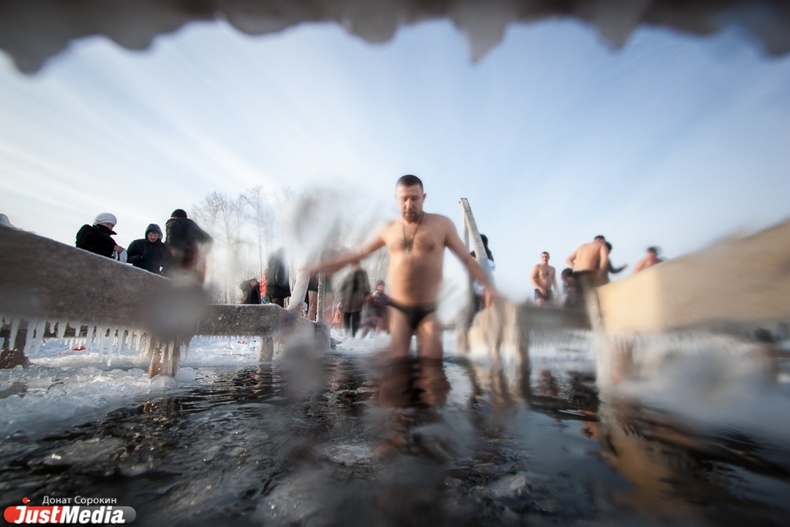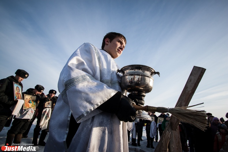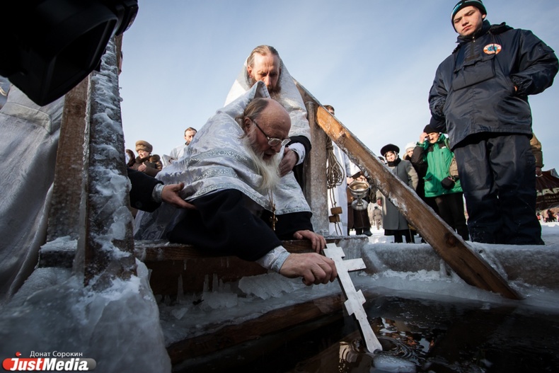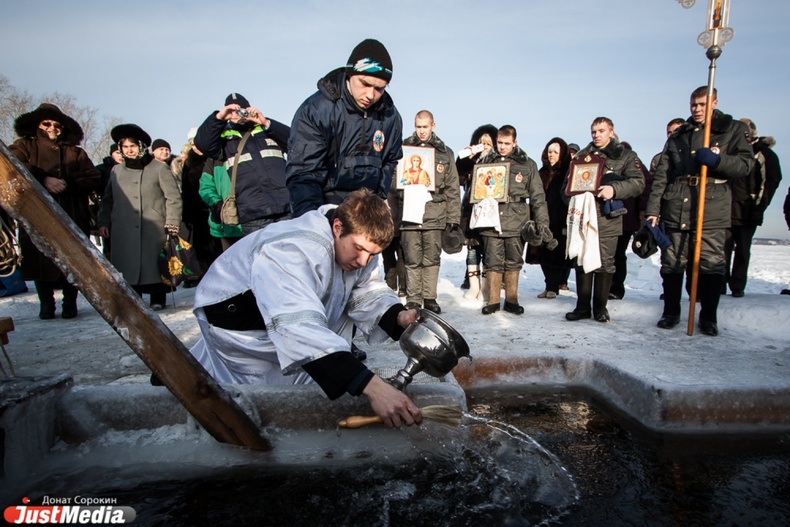 Крестный ход вышел из Свято-Троицкого храма к озеру Шарташ. После освящения купелей все желающие смогли искупаться в прорубях.