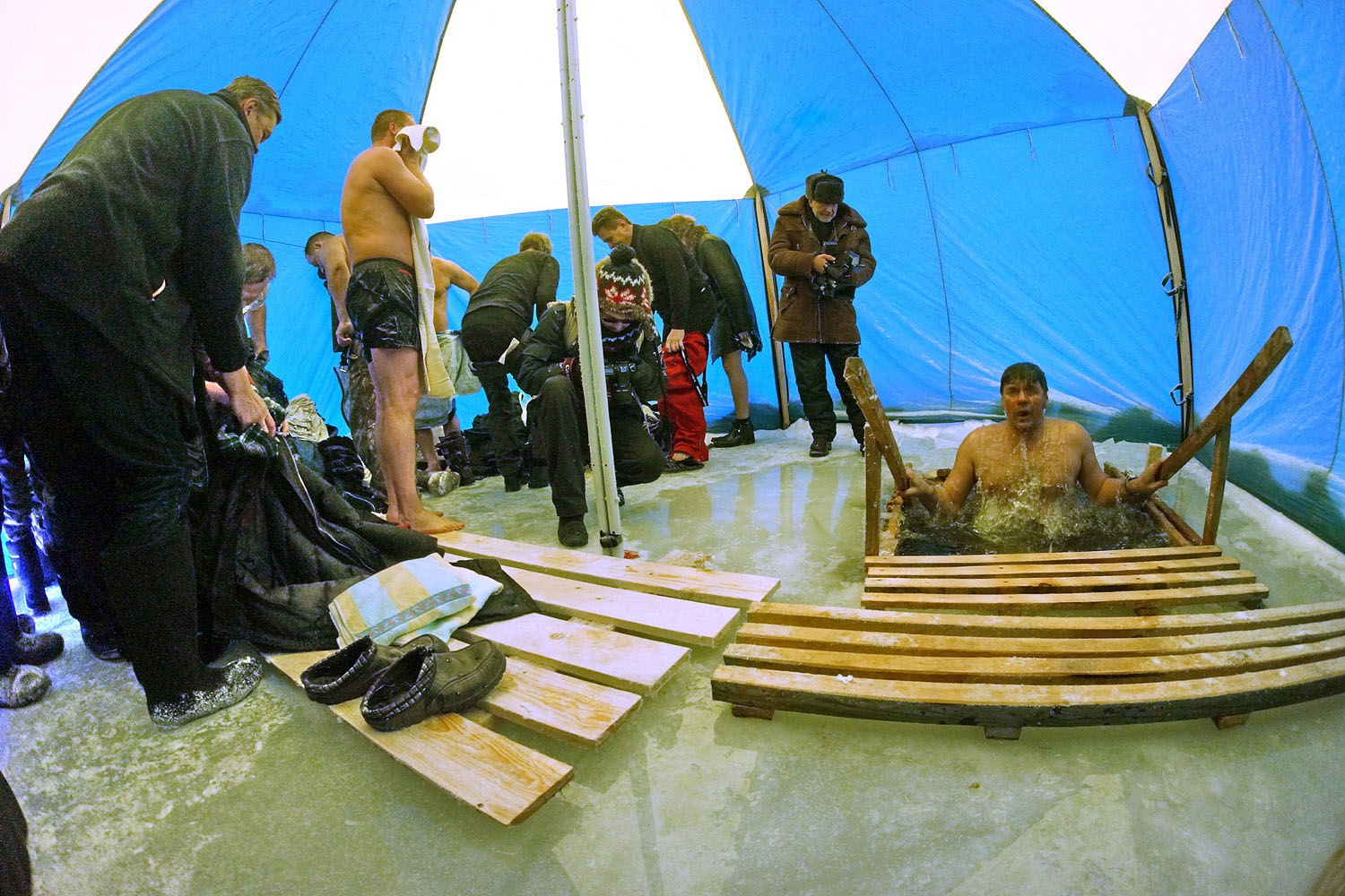 В селе Чусовом 19 января открылся V зимний фестиваль Уральско-Шотландского общества, посвященный творчеству двух поэтов Роберта Бернса и Владимира Высоцкого. Специальный гость фестиваля, шотландский бард Томми Бивитт решил последовать русским традициям и окунулся в крещенскую прорубь.