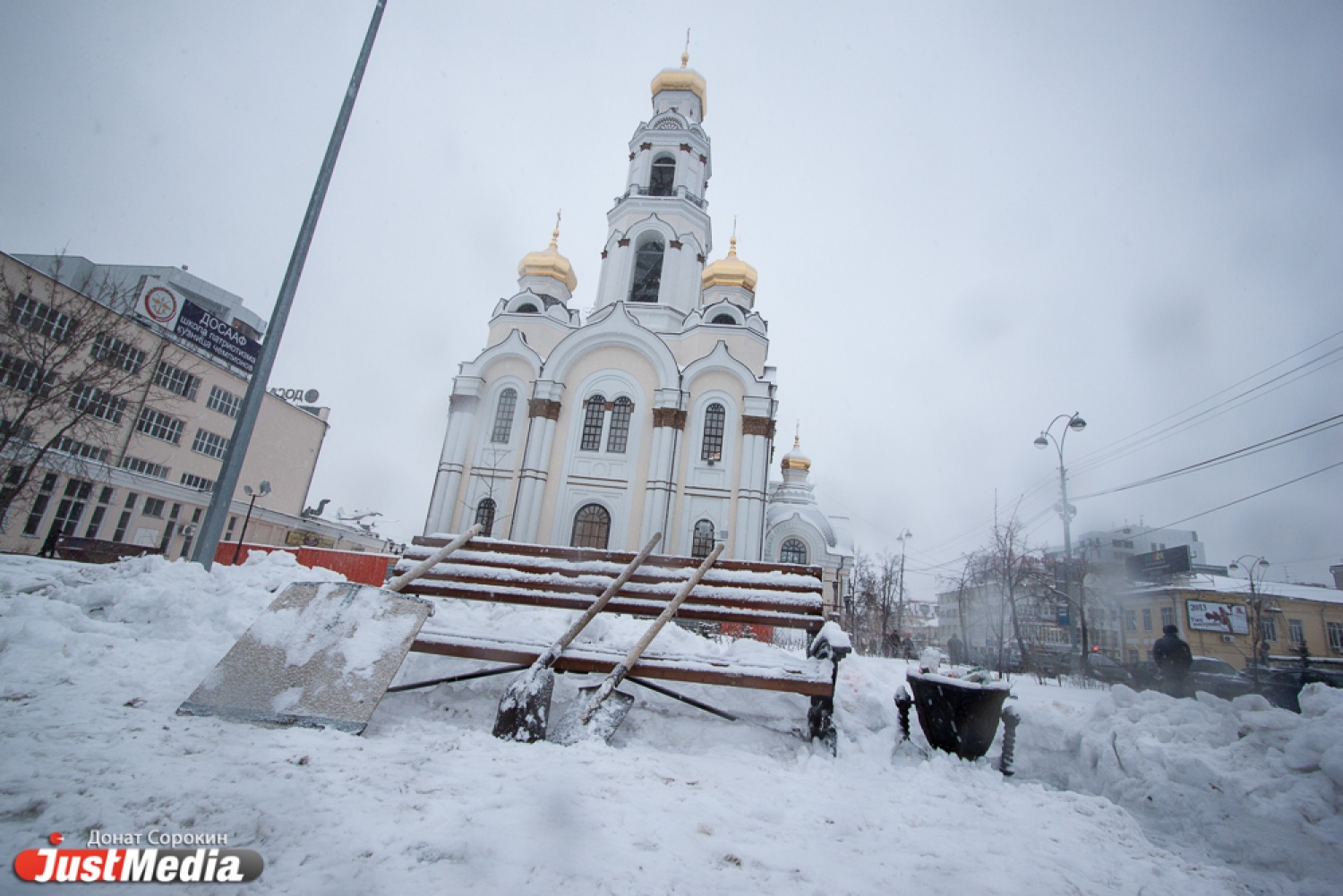 Уборка снега на центральных улицах Екатеринбурга
