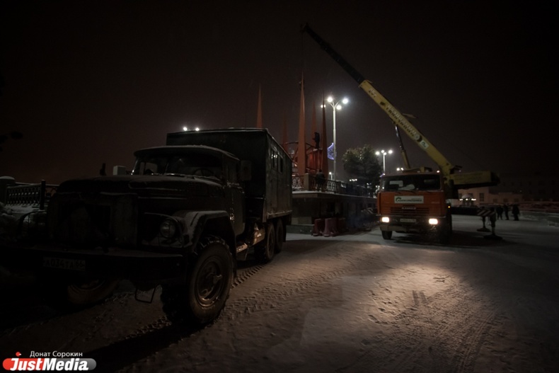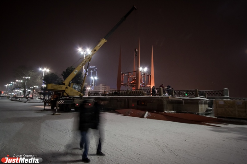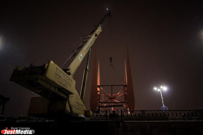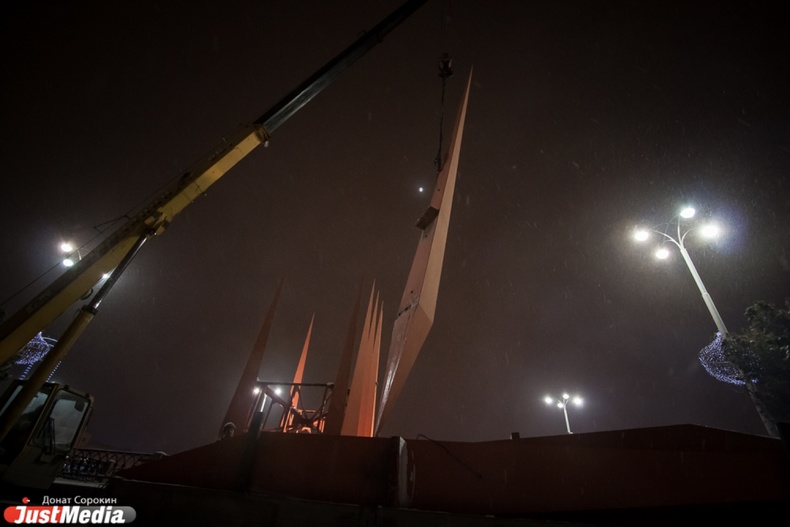 Демонтаж конструкций памятника «Орден Ленина» на Плотинке