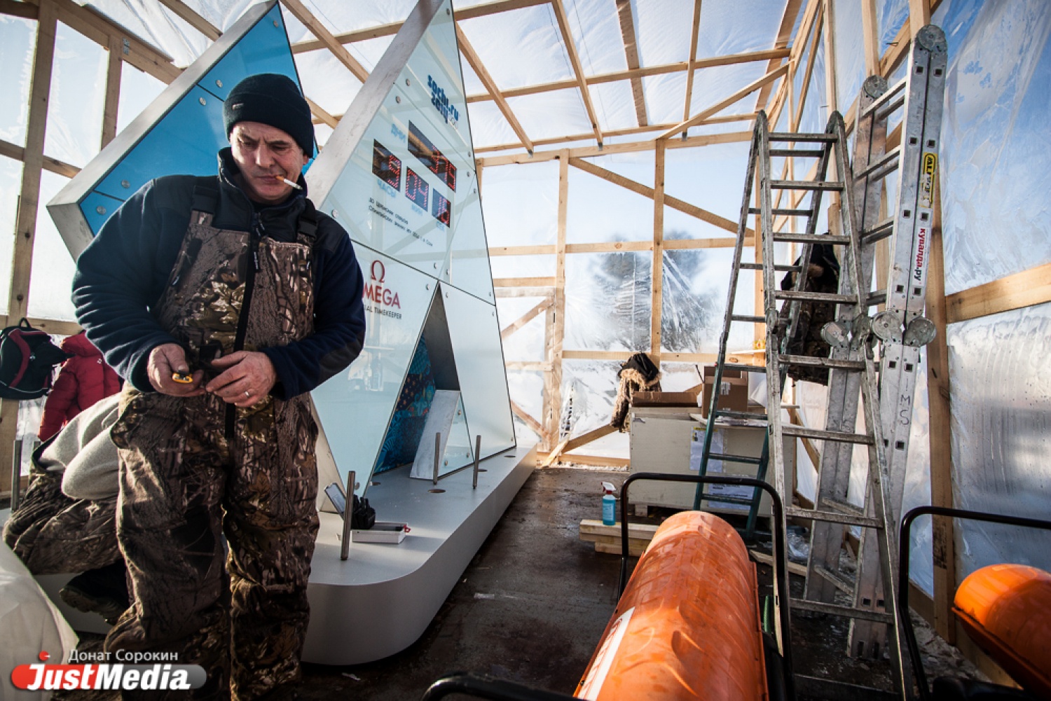 Монтаж часов обратного отсчета до олимпиады в Сочи 2014 года