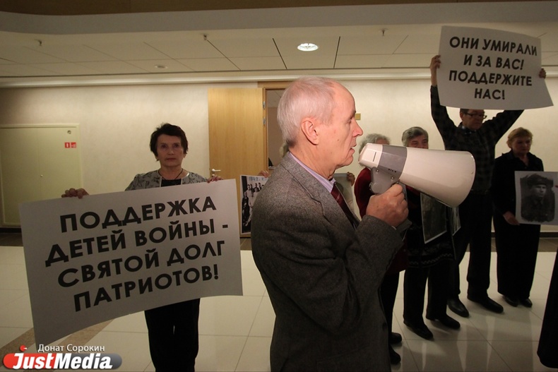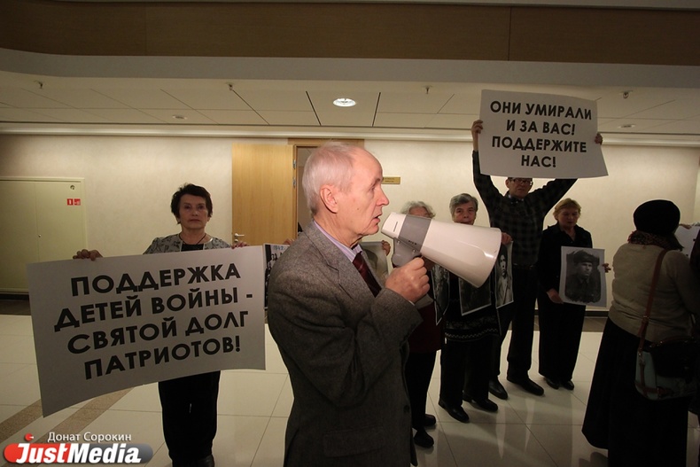 Пикет детей Великой Отечественной Войны в здании Законодательного собрания Свердловской области