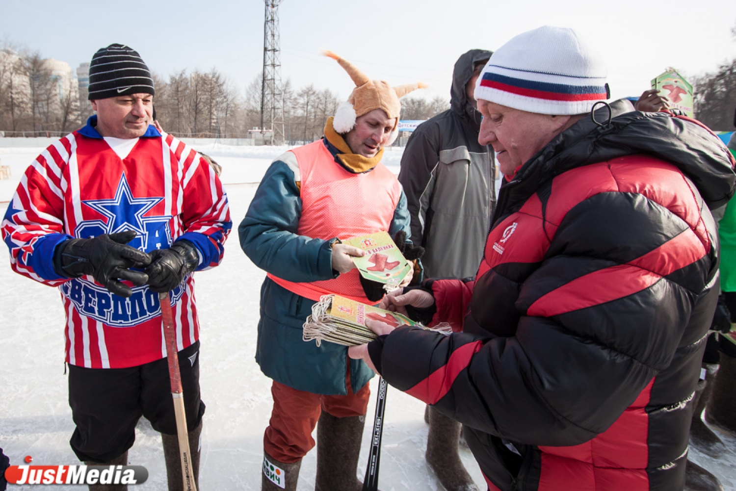 Сегодня на стадионе «Динамо» состоялся первый в Свердловской области дружеский матч по хоккею в валенках. В нем приняли участие четыре команды, состоящие из чемпионов мира, призеров Олимпийских игр, известных радио и телеведущих, девушек-спортсменок и гостей из республики Гвинея.