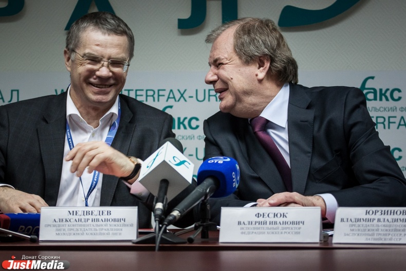 В пресс-конференции участвовали: чемпион мира по хоккею Алексей Яшин, глава администрации губернатора Яков Силин, председатель Правления МХЛ Александр Медведев, исполнительный директор Федерации хоккея России Валерий Фесюк, заслуженный тренер России Владимир Юрзинов, управляющий директор МХЛ Дмитрий Ефимов
