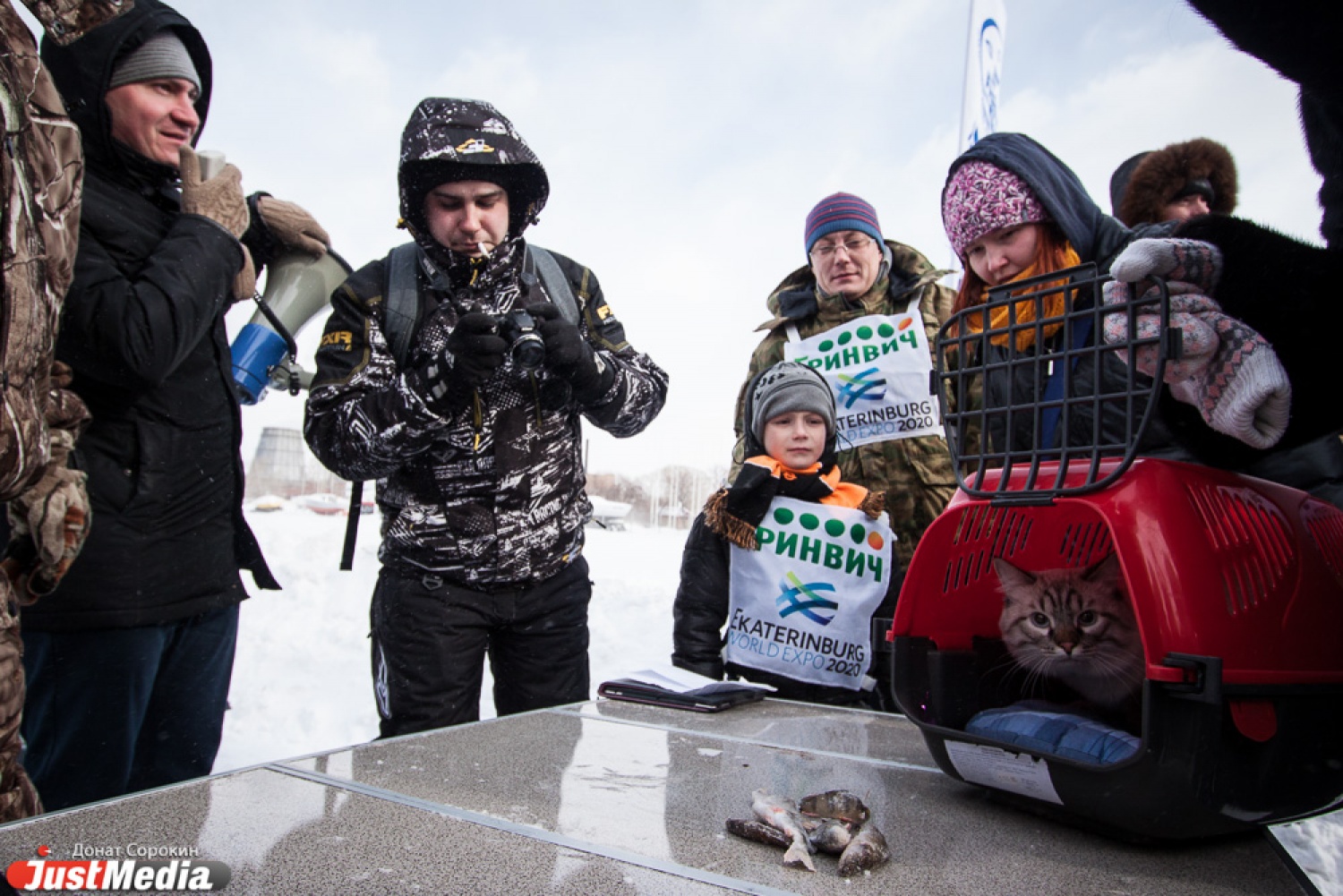 На льду Верх-Исетского пруда несколько десятков любителей зимней рыбалки устроили фишмоб. Они оборудовали места для ловли и вырезали лунки, расположившись по контурам гигантской надписи Expo-2020, и приняли участие в соревнованиях. Всем участникам был дан один час на то, чтобы поставить личный рекорд.