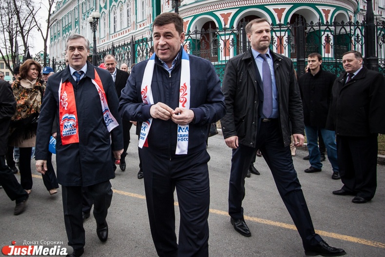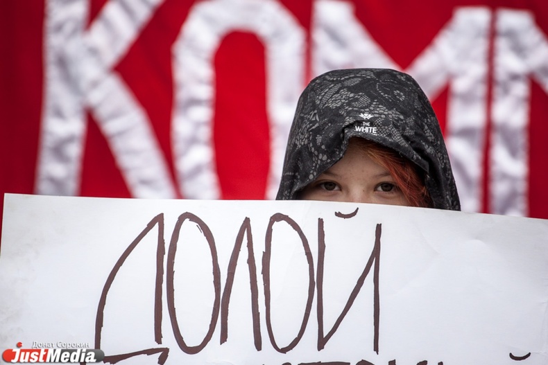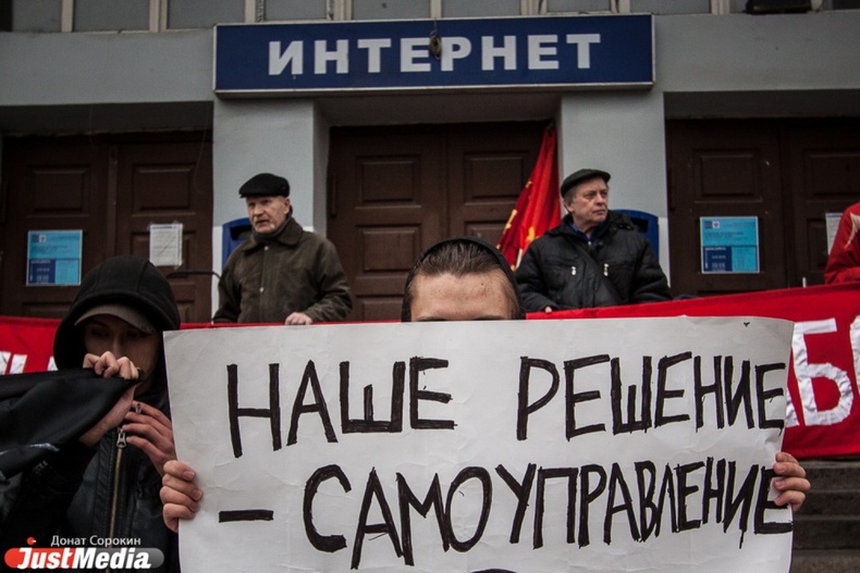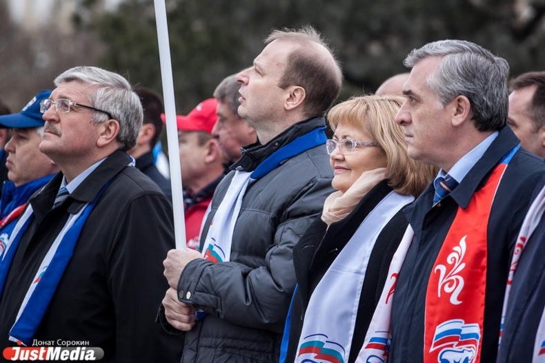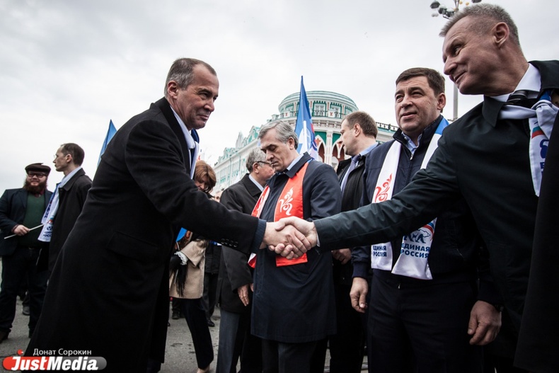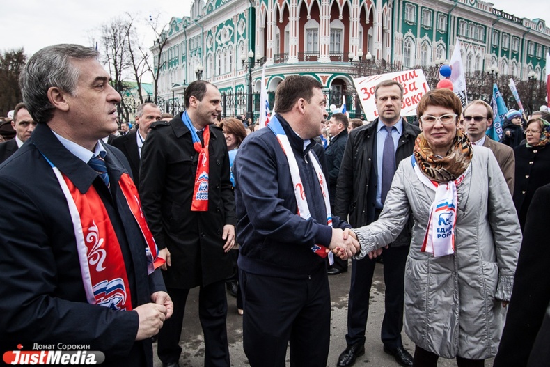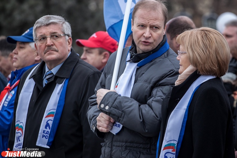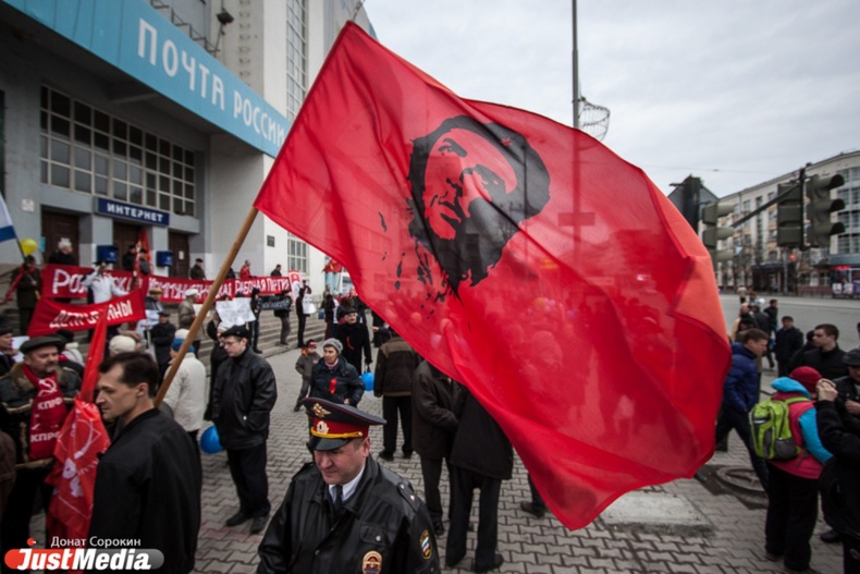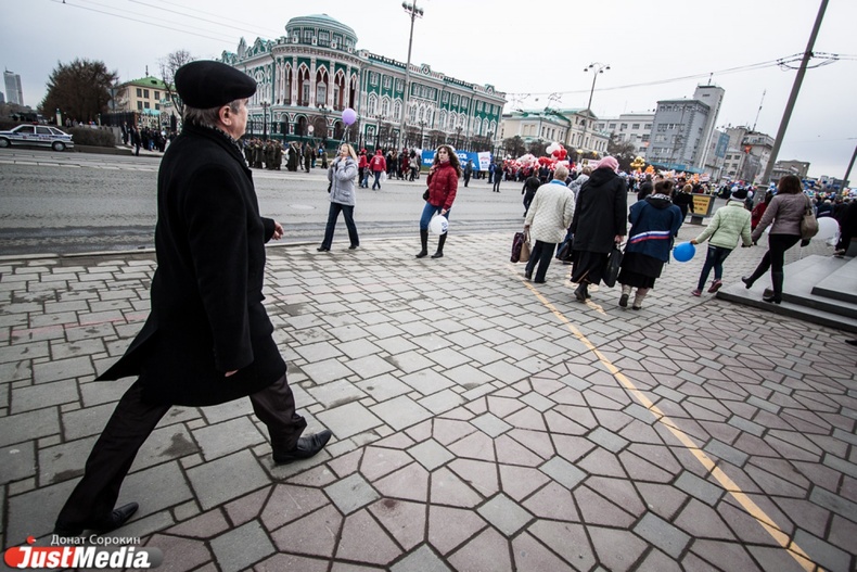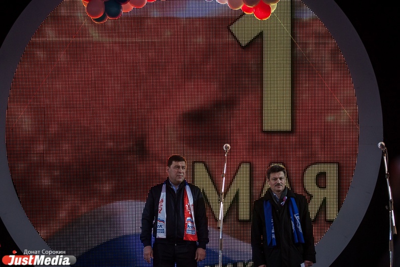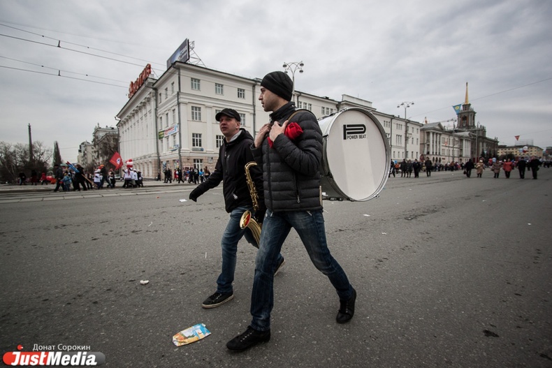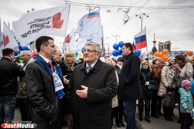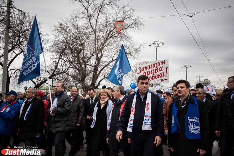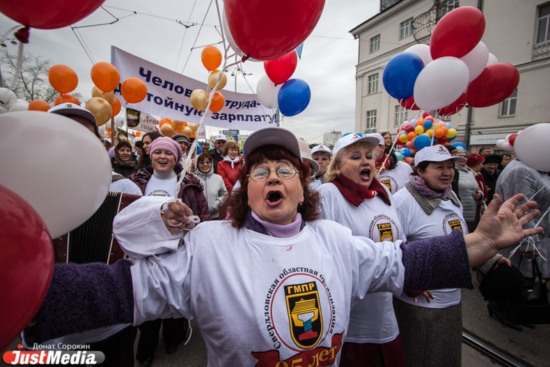 Несмотря на плохую погоду – холод и дождь, рано утром на проспекте Ленина возле дома Севастьянова и Главпочтамта собрались тысячи демонстрантов. Хотя добровольцев среди собравшихся было немного, настроение у толпы было такое же радостное и светлое, как и у их предшественников лет 30-40 назад. Те же воздушные шары, дети на плечах у родителей, патриотическая музыка. Только красный цвет сменился на синий: возглавляли колонну демонстрантов единороссы. А главный первомайский лозунг «Мир. Труд. Май» трансформировался в «Мир. Труд. Путин».