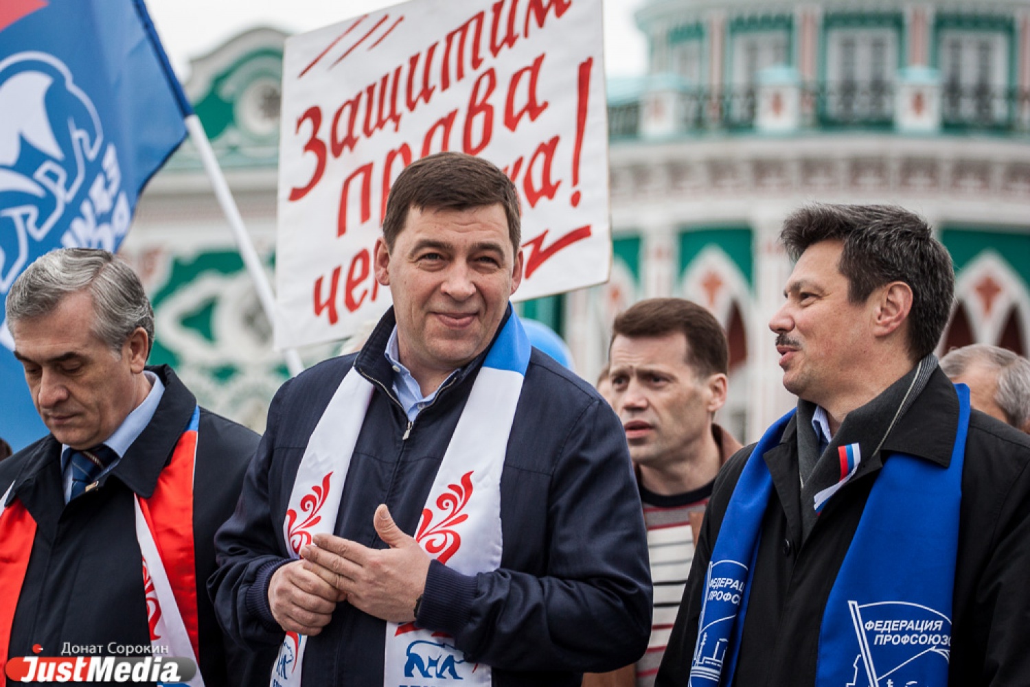 Несмотря на плохую погоду – холод и дождь, рано утром на проспекте Ленина возле дома Севастьянова и Главпочтамта собрались тысячи демонстрантов. Хотя добровольцев среди собравшихся было немного, настроение у толпы было такое же радостное и светлое, как и у их предшественников лет 30-40 назад. Те же воздушные шары, дети на плечах у родителей, патриотическая музыка. Только красный цвет сменился на синий: возглавляли колонну демонстрантов единороссы. А главный первомайский лозунг «Мир. Труд. Май» трансформировался в «Мир. Труд. Путин».