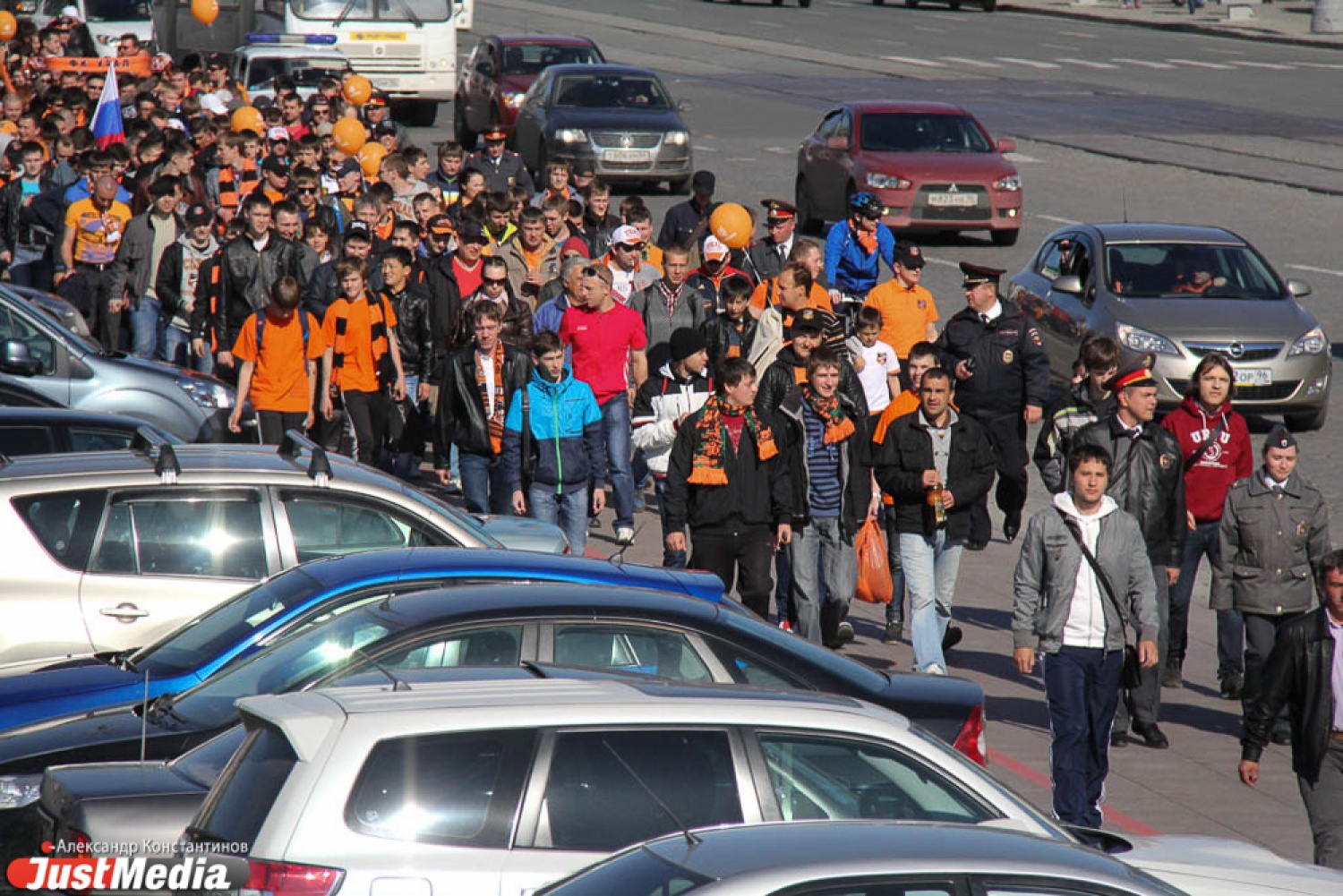 Шествие болельщиков ФК «Урал» в честь досрочного выхода в Премьер-Лигу
