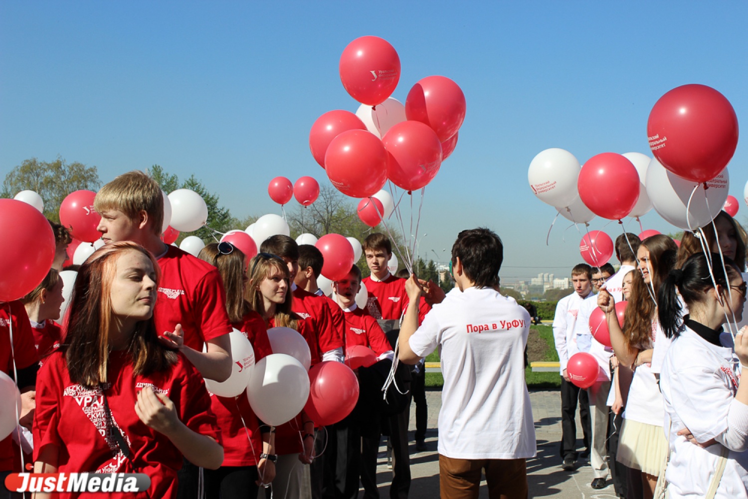 Пятничное утро JustMedia встретил в компании 11-классников Екатеринбурга. Прежде чем услышать традиционные «последние звонки», школьники собрались на площадке перед главным учебным корпусом Уральского федерального университета, который организовал для них необычную акцию — флешмоб «Пора в УрФУ!»