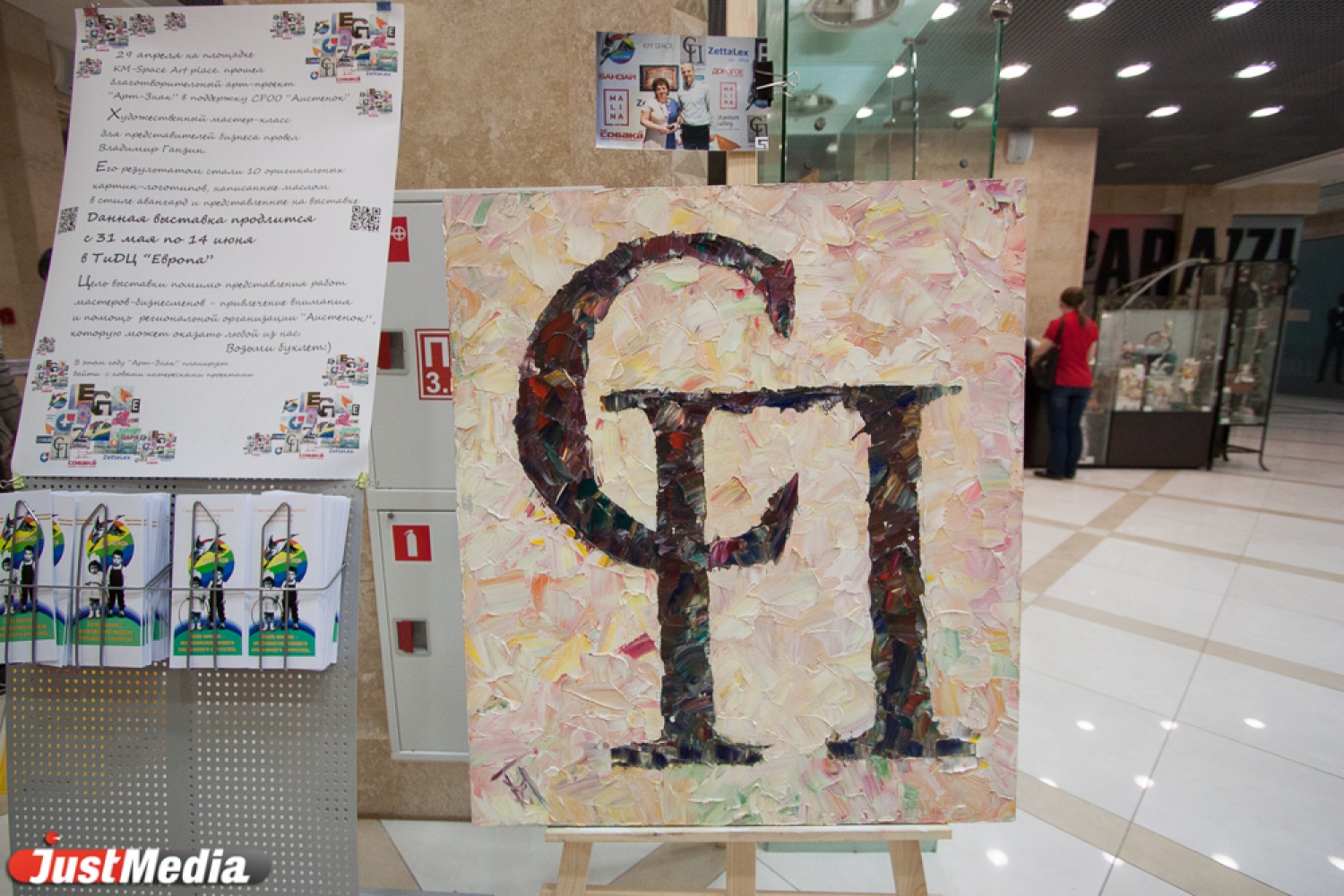 В Екатеринбурге в торговом центре «Европа» открылась выставка необычных картин. На них известные уральские бизнесмены маслом изобразили логотипы своих компаний.