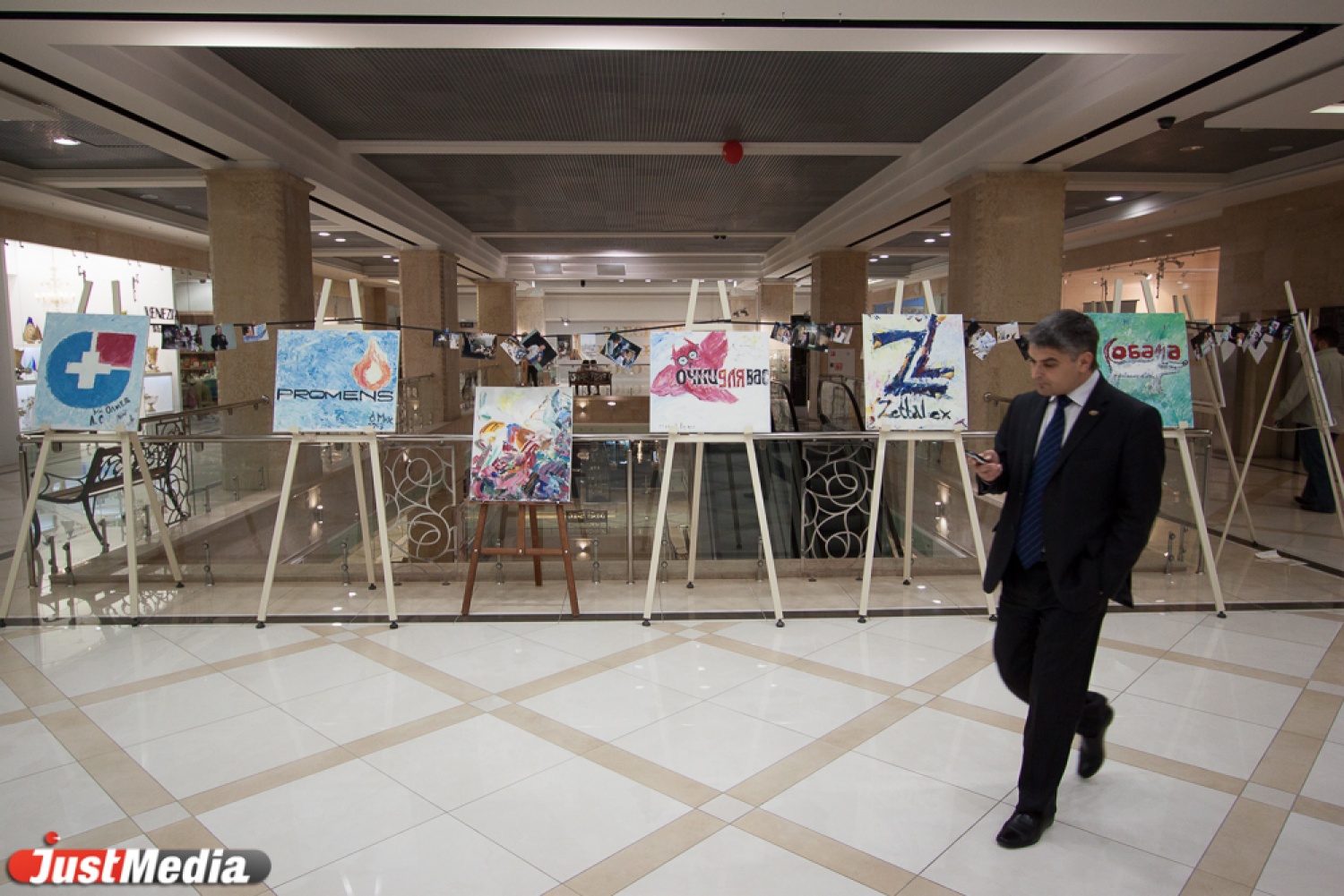 В Екатеринбурге в торговом центре «Европа» открылась выставка необычных картин. На них известные уральские бизнесмены маслом изобразили логотипы своих компаний.