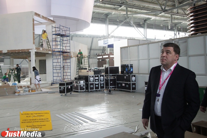 Сегодня Евгений Куйвашев приехал в выставочник с инспекцией. Глава региона проверял, готова ли площадка для проведения одной из самых крупных промышленных выставок России.