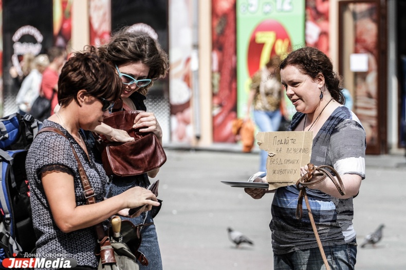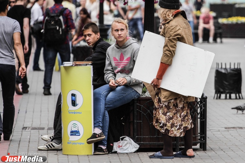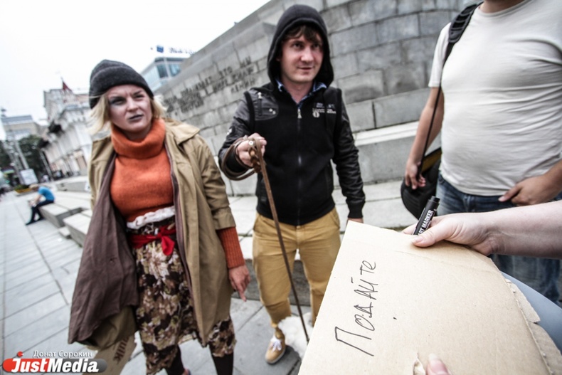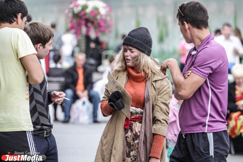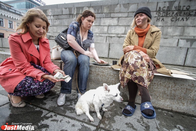 В Екатеринбурге прошел эксперимент под названием «попрошайки».Его участникам предложили примерить на себя роли разных героев, которые в повседневной жизни просят деньги у прохожих.